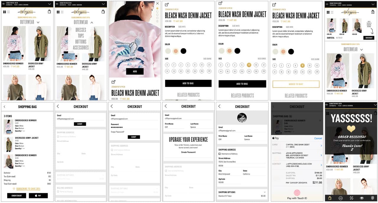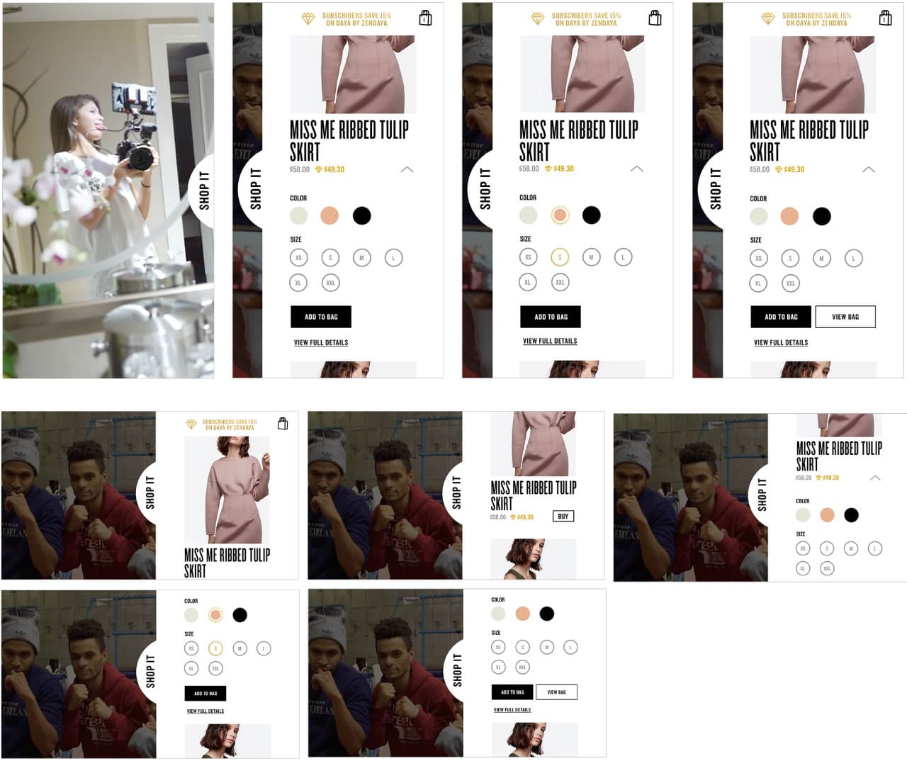 The layout of the site stemmed from Zendaya’s personal taste to have symmetry. She preferred a layout that had balance as well as opportunities to showcase large images. One of the main issues to tackle was the editorial programming for video formats. We knew Zendaya loves using Snapchat, so I specifically implemented a vertical orientation for video publishables as well as horizontal for flat content or horizontal videos. To break up the redundancy of the grid, a shopping component is implemented in key spots to guide the user to the e-commerce section of the site.